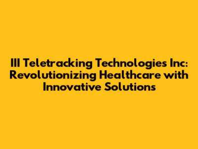Hey healthcare folks, have you heard about III Teletracking Technologies Inc? If you haven't, you're in for a treat! They're like the superheroes of healthcare technology, swooping in to save the day with their innovative solutions. Let's dive deep into what makes III Teletracking so special, how they're changing the game, and why you should totally care.