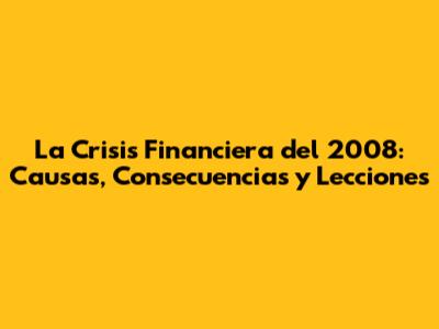 La Crisis Financiera Del 2008: Causas, Consecuencias Y Lecciones