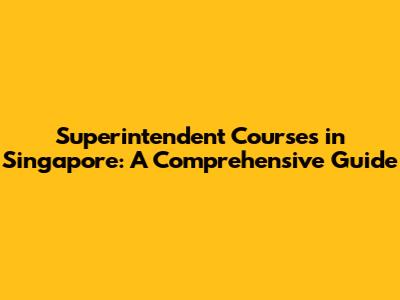 Superintendent Courses In Singapore: A Comprehensive Guide